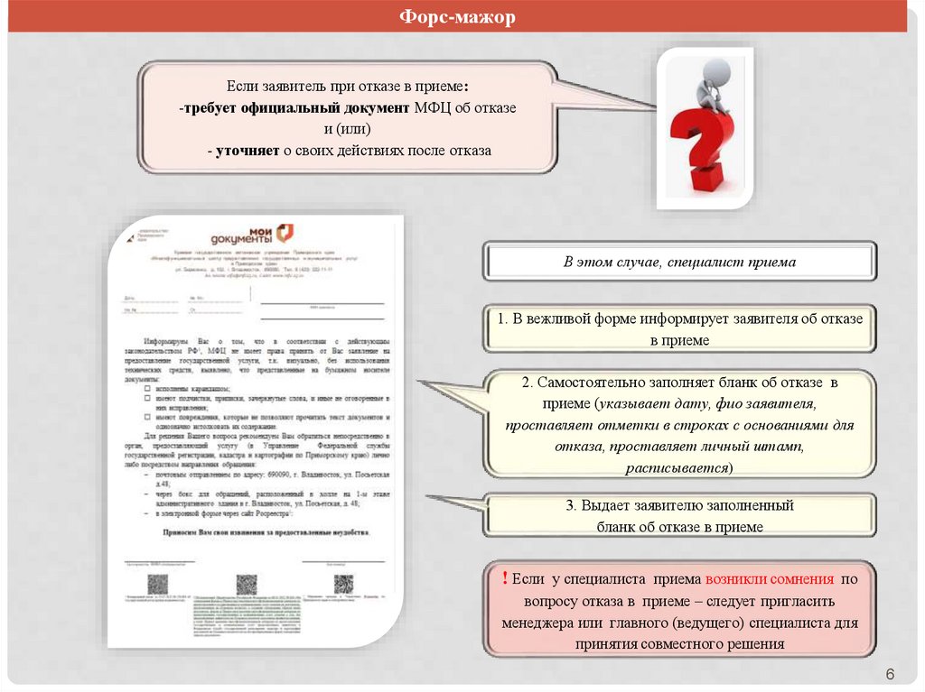 Форс-мажорЕсли заявитель при отказе в приеме: