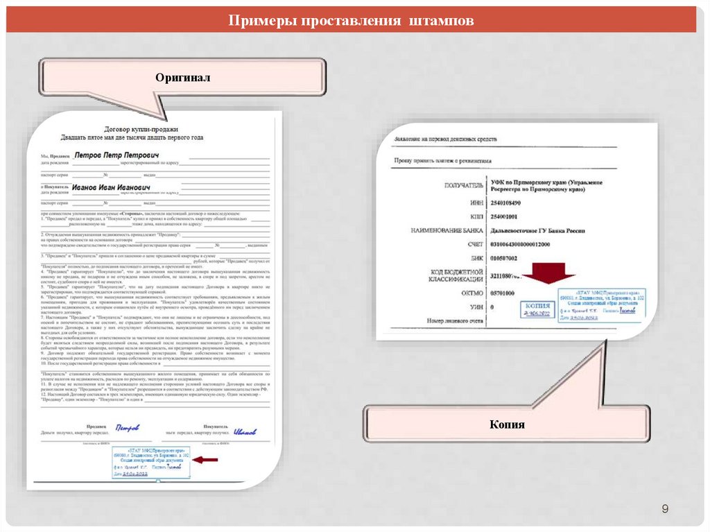 Примеры проставления штамповОригинал
