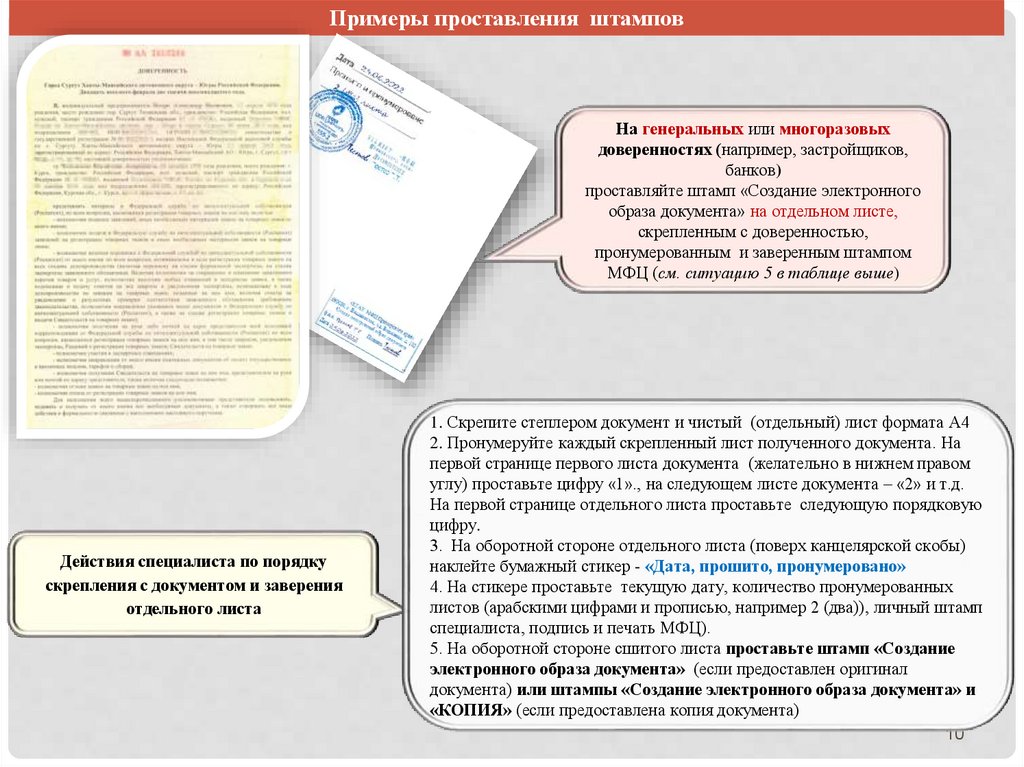 Примеры проставления штамповНа генеральных или многоразовых