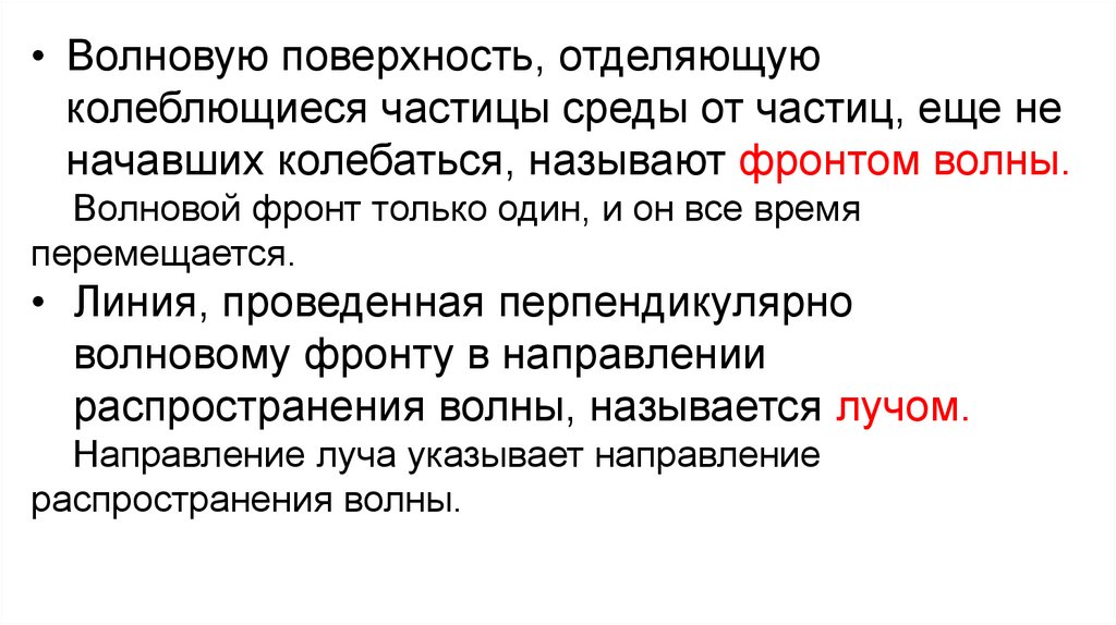• Волновую поверхность, отделяющуюколеблющиеся частицы среды от частиц, еще не