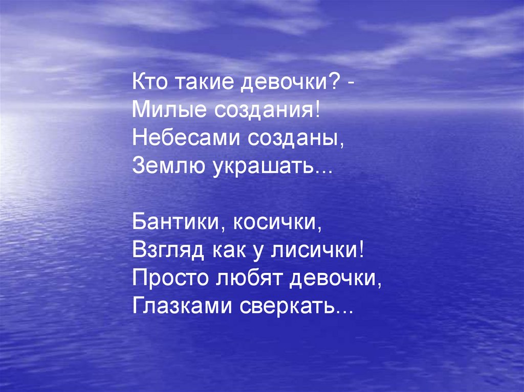 Кто такие девочки? Милые создания!Небесами созданы,