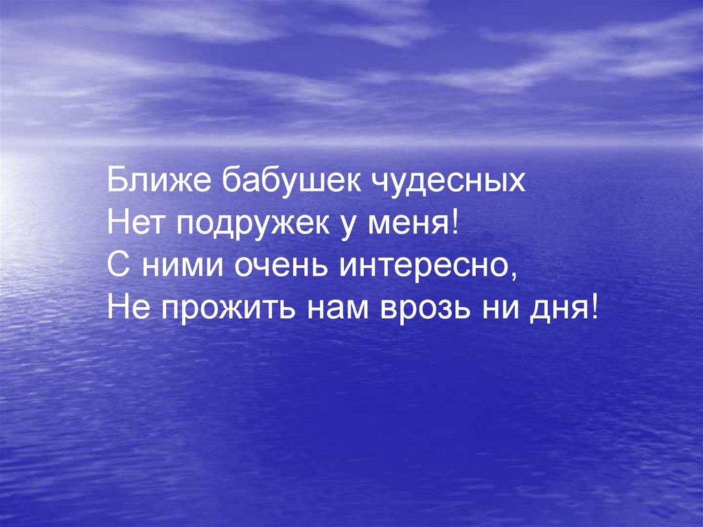 Ближе бабушек чудесныхНет подружек у меня!