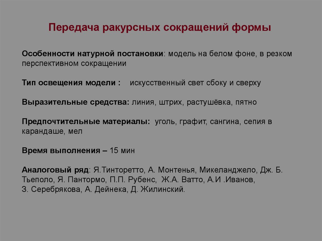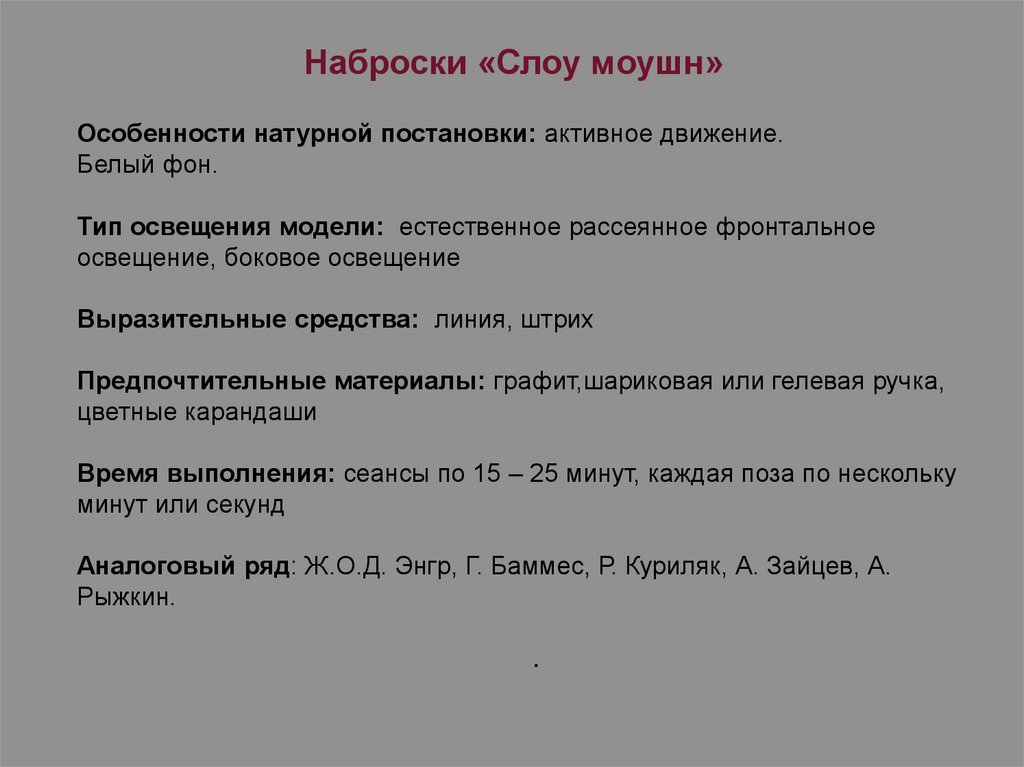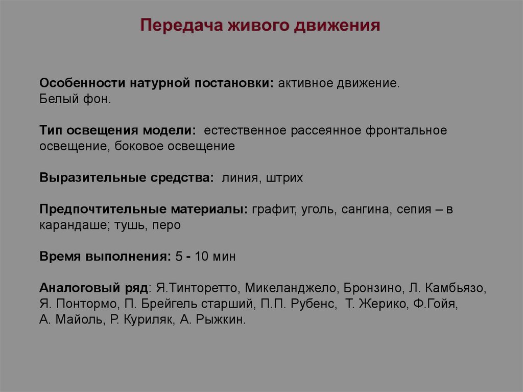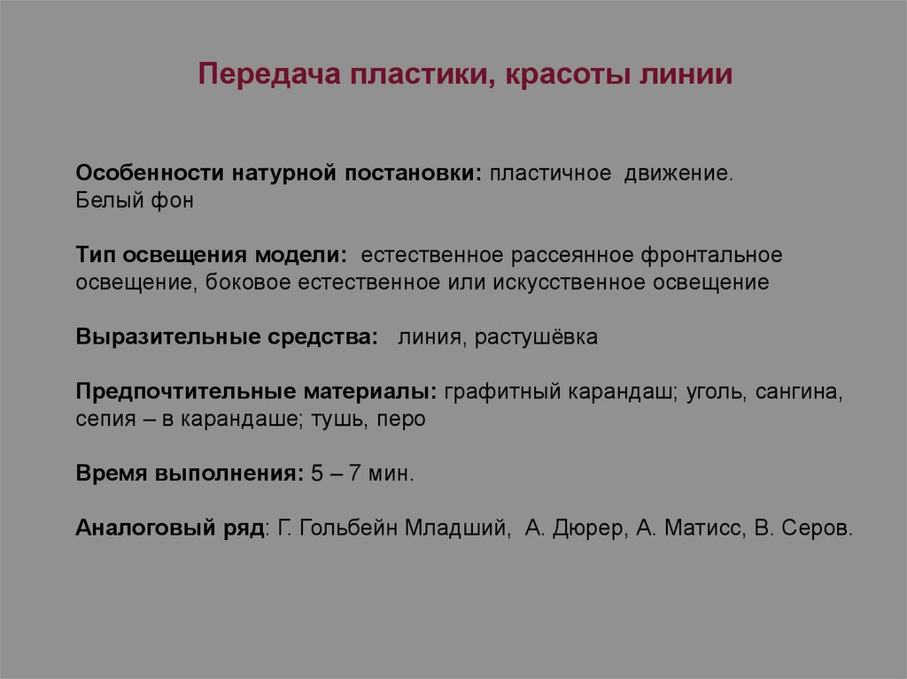 Передача пластики, красоты линииОсобенности натурной постановки: пластичное движение.
