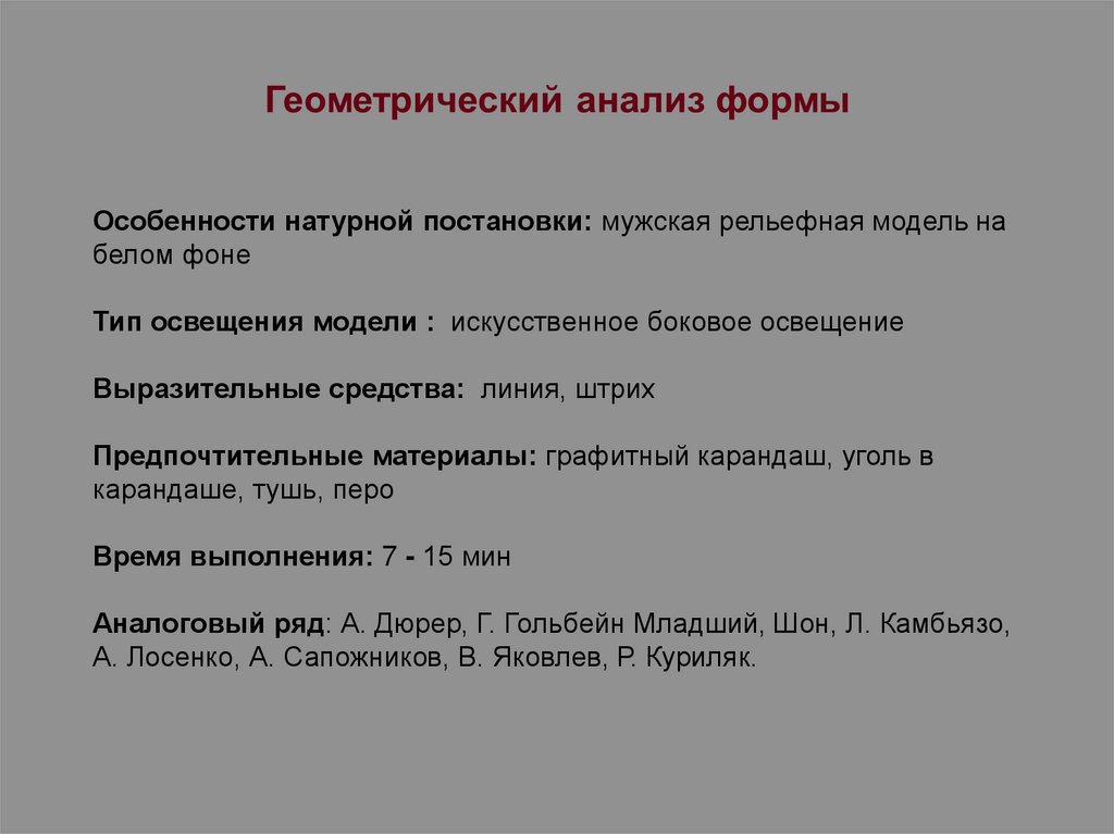 Аналоговый ряд: Г. Гольбейн Младший, А. Дюрер, А. Матисс, В. Серов.