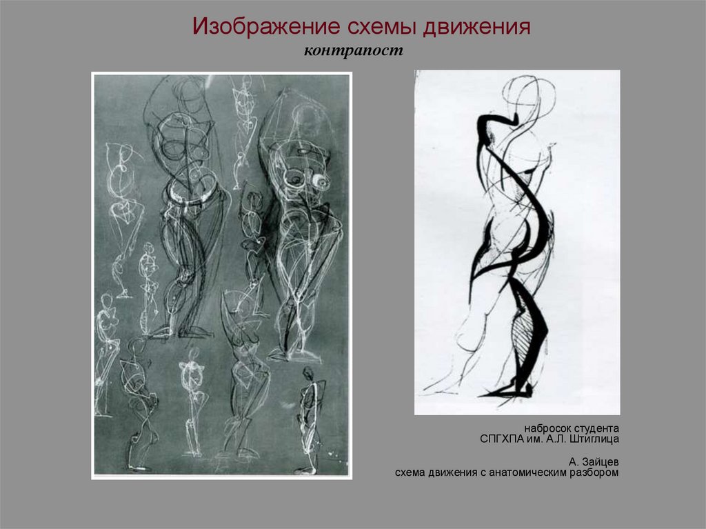 Изображение схемы движениянаброски, выполненные студентами ХГФ