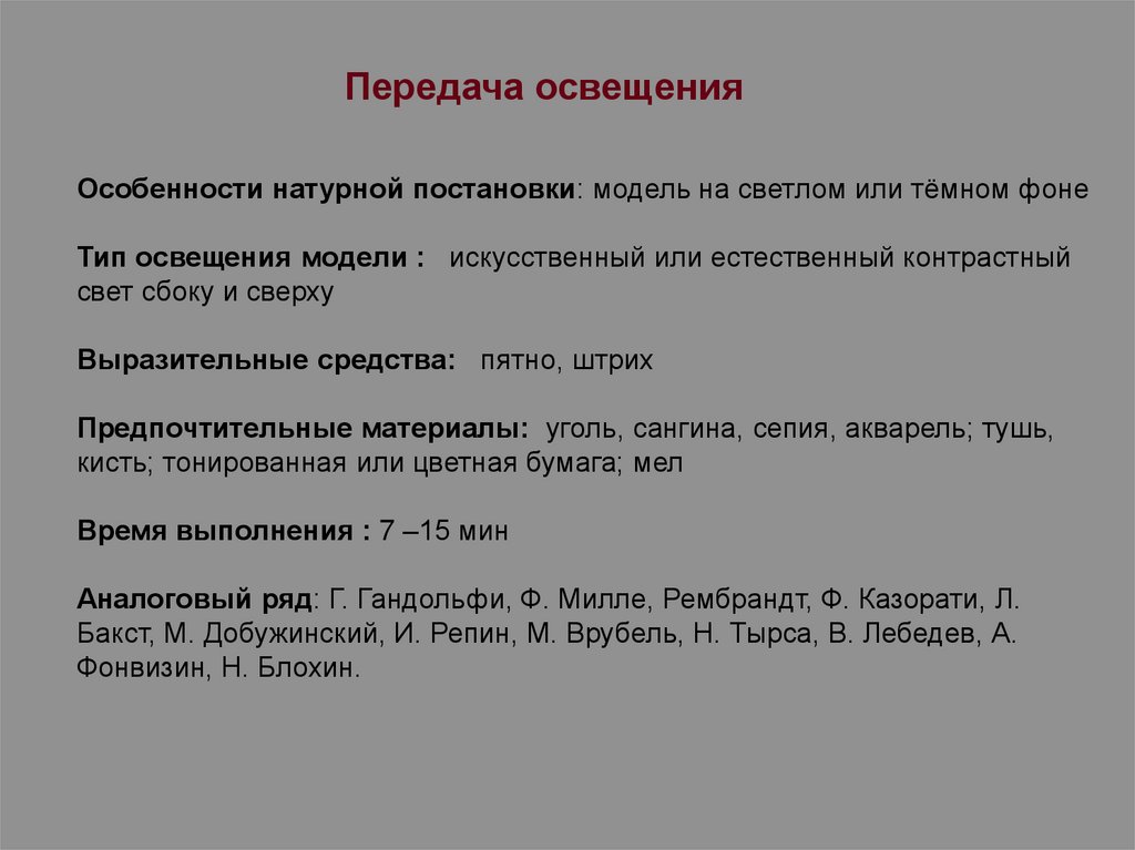 Передача освещенияОсобенности натурной постановки: модель на светлом или тёмном фоне