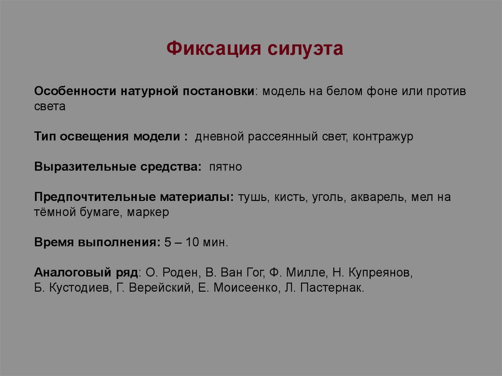 Фиксация силуэтаОсобенности натурной постановки: модель на белом фоне или против