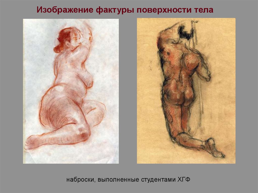 Изображение фактуры поверхности теланаброски, выполненные студентами ХГФ