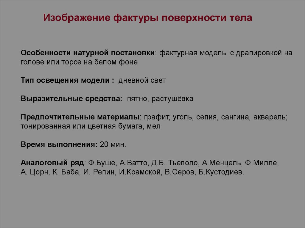Изображение фактуры поверхности телаОсобенности натурной постановки: фактурная модель с драпировкой на