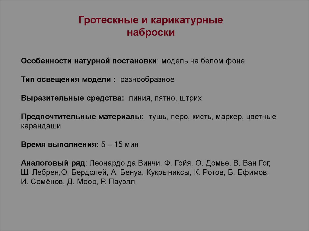 Аналоговый ряд: Леонардо да Винчи, Ф. Гойя, О. Домье, В. Ван Гог,