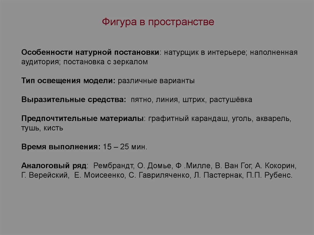 Фигура в пространствеОсобенности натурной постановки: натурщик в интерьере; наполненная
