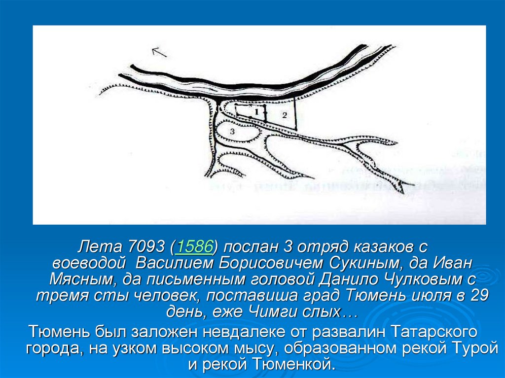 Лета 7093 (1586) послан 3 отряд казаков с