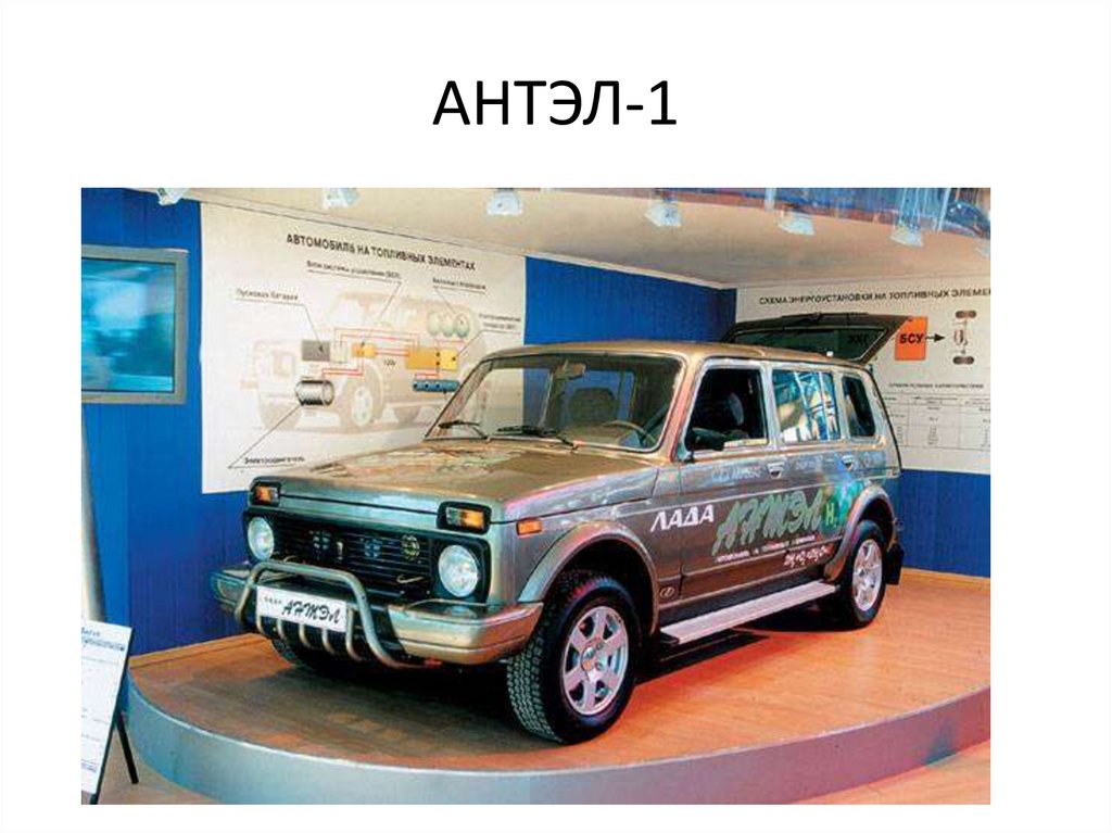 22. АНТЭЛ-2: пробег автомобиля до 350 км, максимальная скорость до 100 км/ч. Общий объём водородных баллонов — 90 л. Максимальная