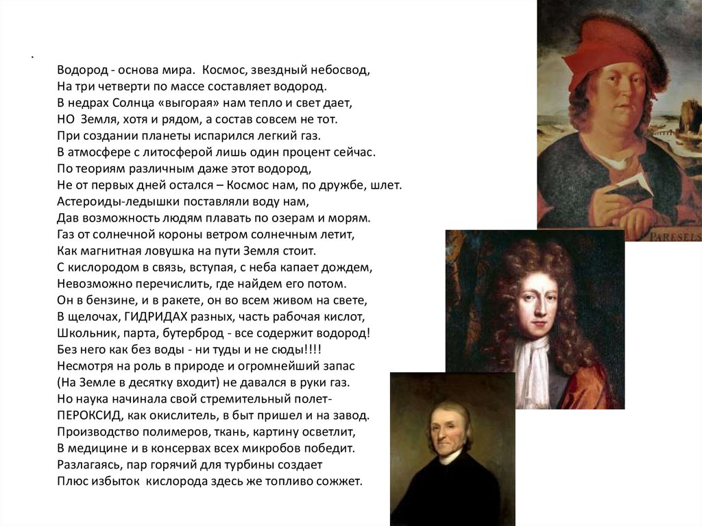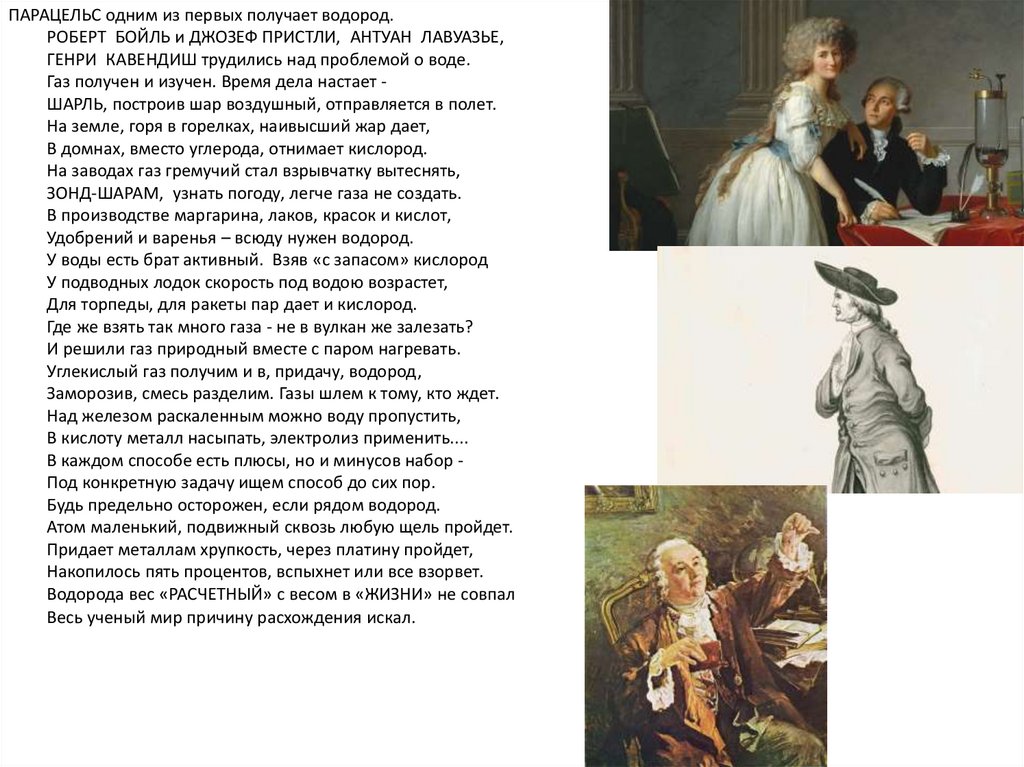 ПАРАЦЕЛЬС одним из первых получает водород.РОБЕРТ БОЙЛЬ и ДЖОЗЕФ ПРИСТЛИ, АНТУАН ЛАВУАЗЬЕ,