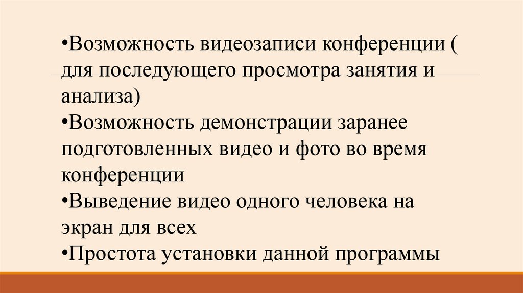 •Возможность видеозаписи конференции (для последующего просмотра занятия и