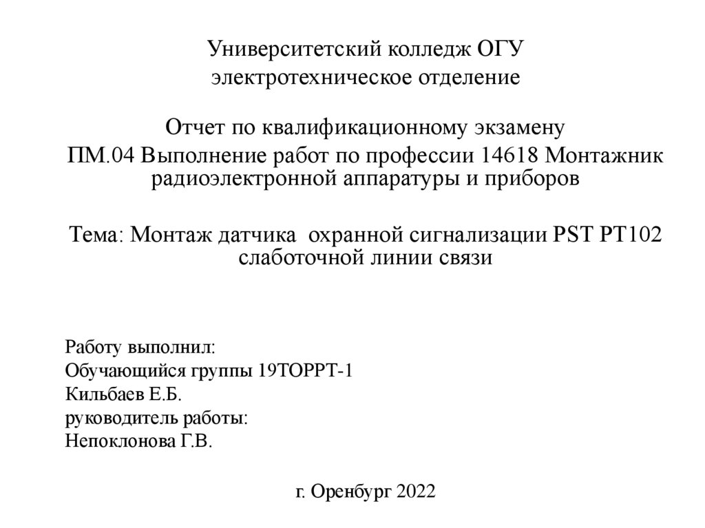 Тема: Монтаж датчика охранной сигнализации PST PT102