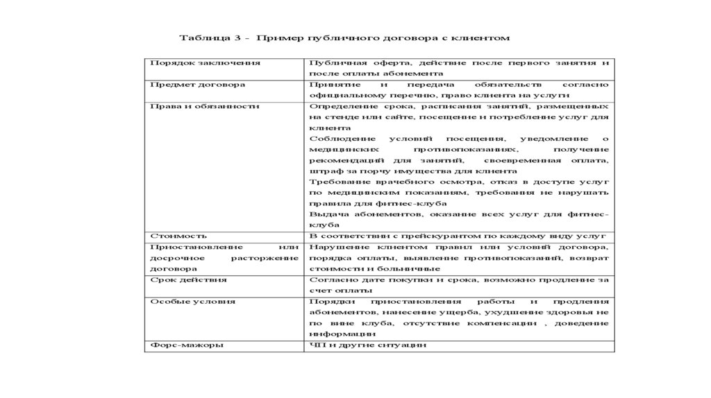 Таблица 3 - Пример публичного договора с клиентомПорядок заключения