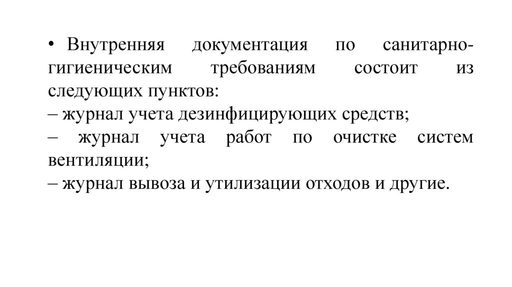 • Внутренняя документация по санитарногигиеническимтребованиям