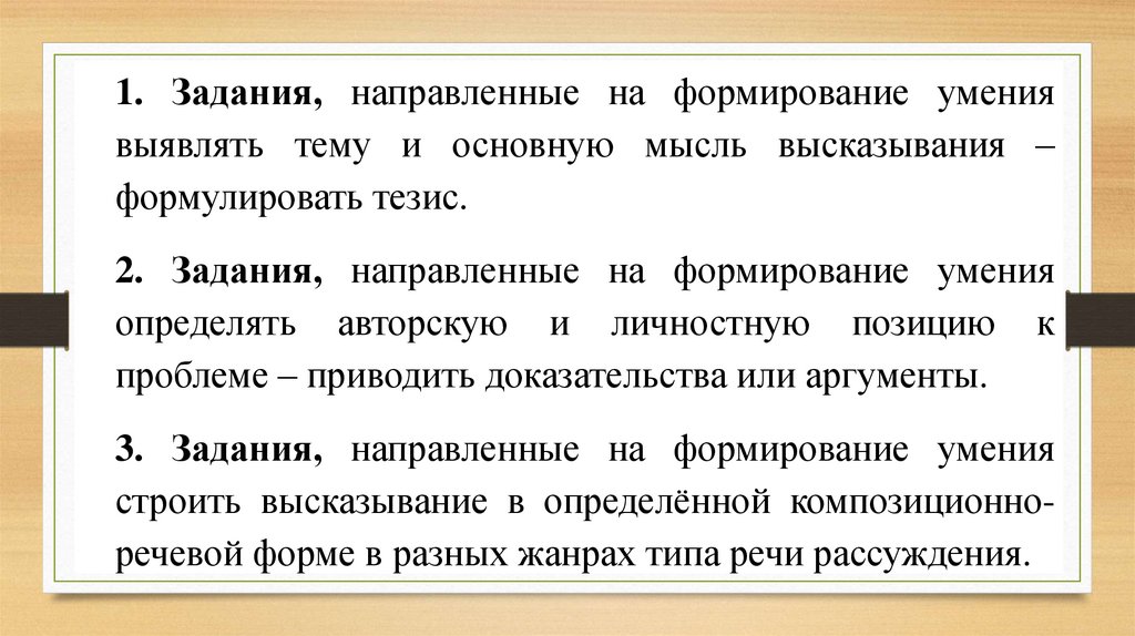 1. Задания, направленные на формирование умениявыявлять тему и основную мысль высказывания –