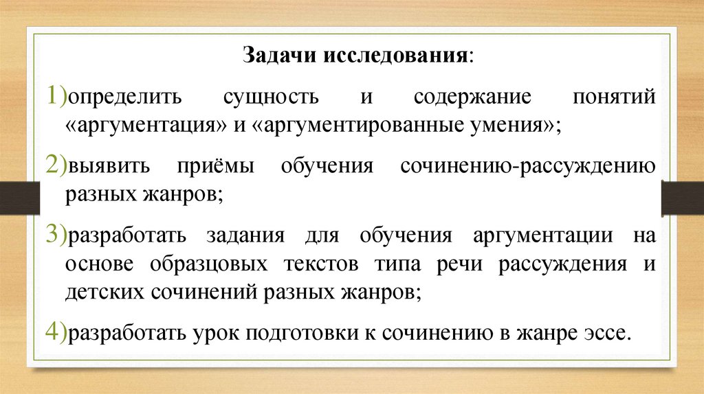 • выявить жанры сочинения-рассуждения, имеющие аргументации