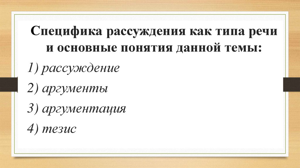 Специфика рассуждения как типа речии основные понятия данной темы: