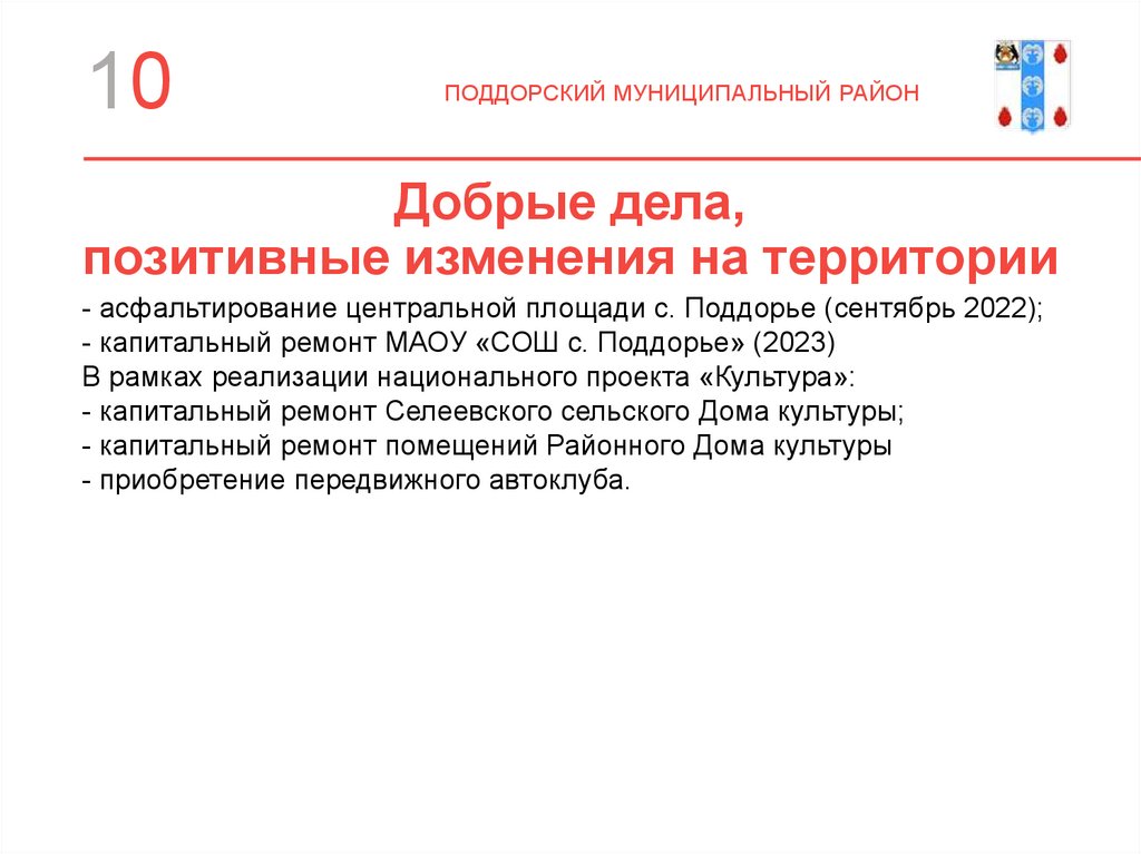 - капитальный ремонт МАОУ «СОШ с. Поддорье» (2023)