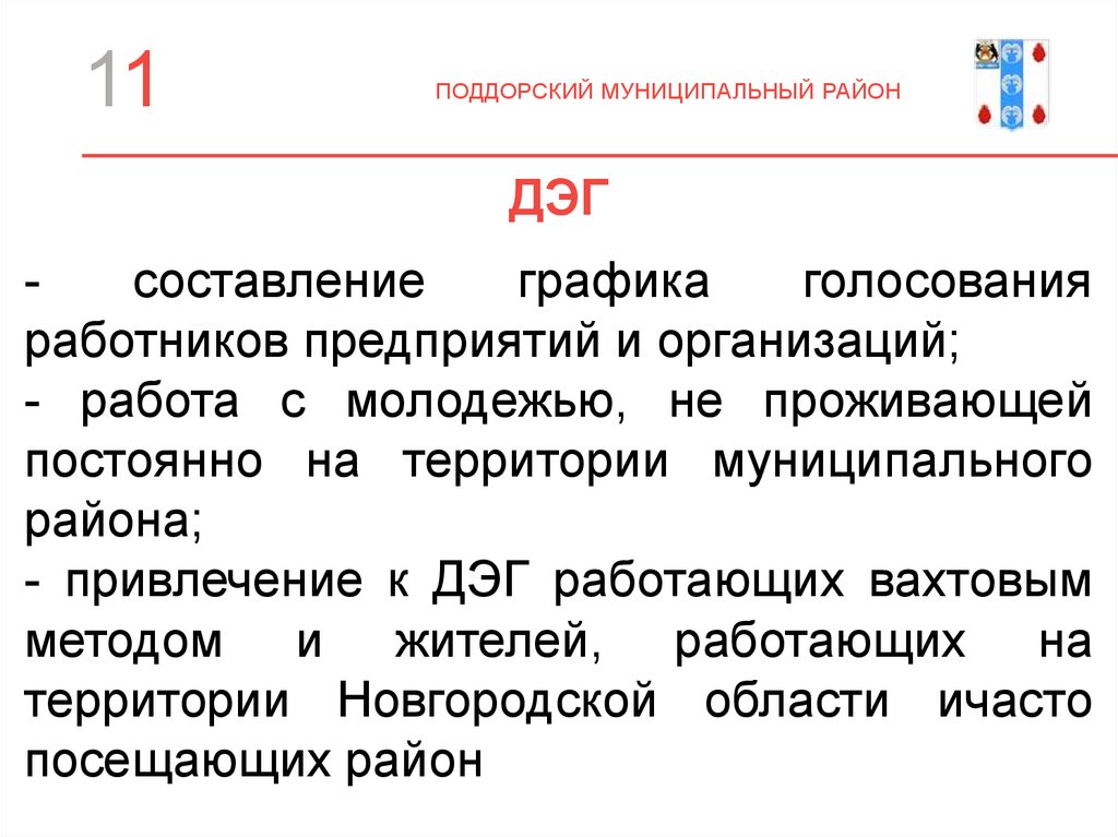 - привлечение к ДЭГ работающих вахтовым