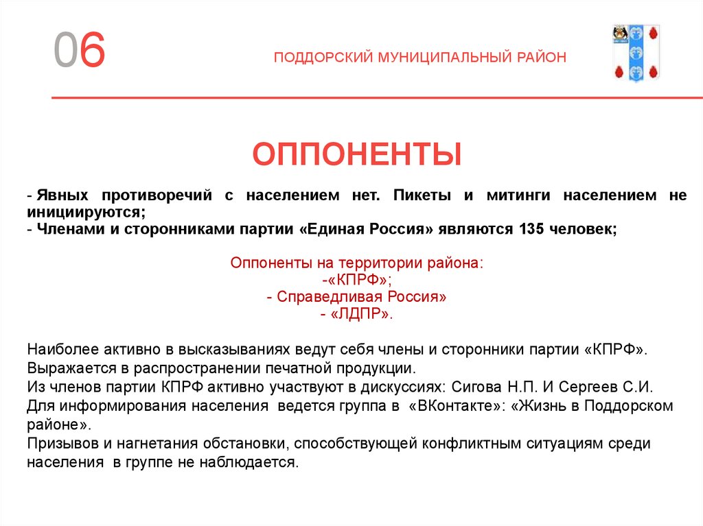 Оппоненты на территории района: