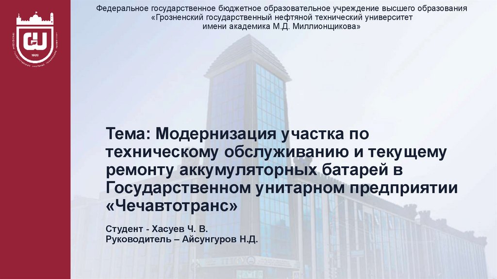 Федеральное государственное бюджетное образовательное учреждение высшего образования«Грозненский государственный нефтяной технический университет