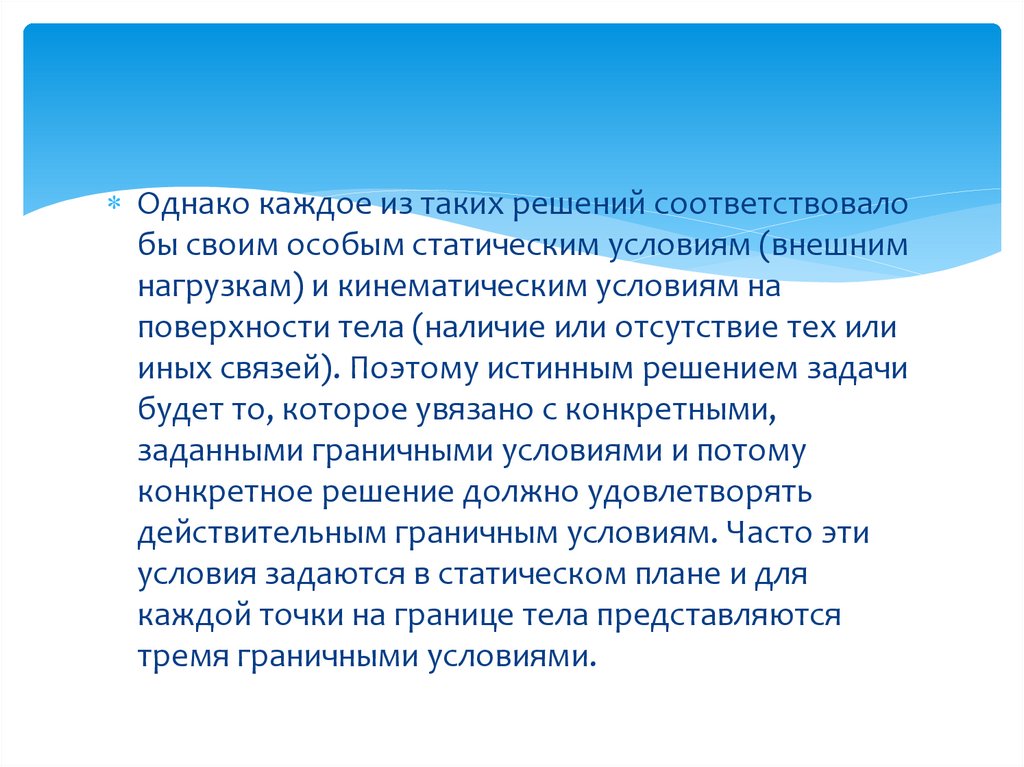 Однако каждое из таких решений соответствовалобы своим особым статическим условиям (внешним