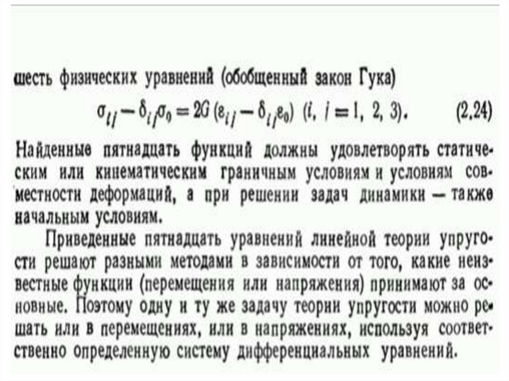 9. Для этой цели теория упругости располагает следующими группами уравнений