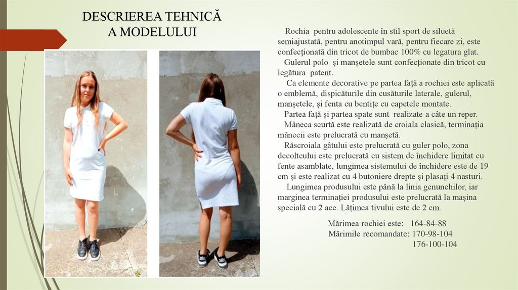 Răscroiala gâtului este prelucrată cu guler polo, zona