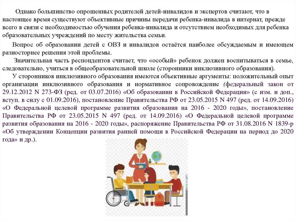 с ОВЗ и инвалидов, их нельзя считать решенными. Следует продолжать искать решение
