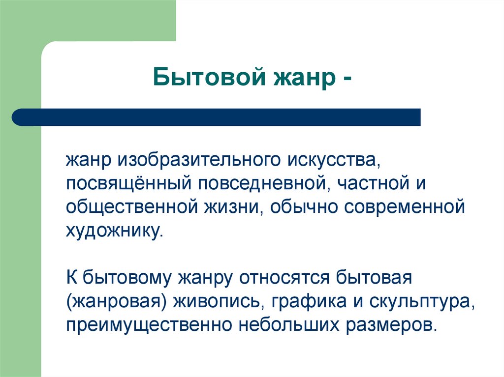 Бытовой жанр жанр изобразительного искусства,посвящённый повседневной, частной и