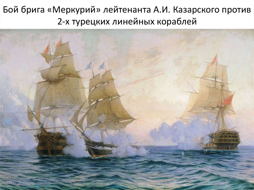 Бой брига «Меркурий» лейтенанта А.И. Казарского против2-х турецких линейных кораблей