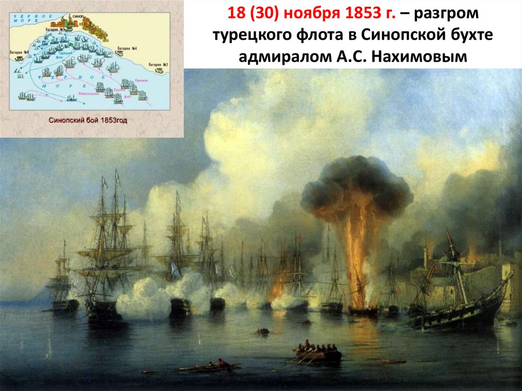18 (30) ноября 1853 г. – разгромтурецкого флота в Синопской бухте