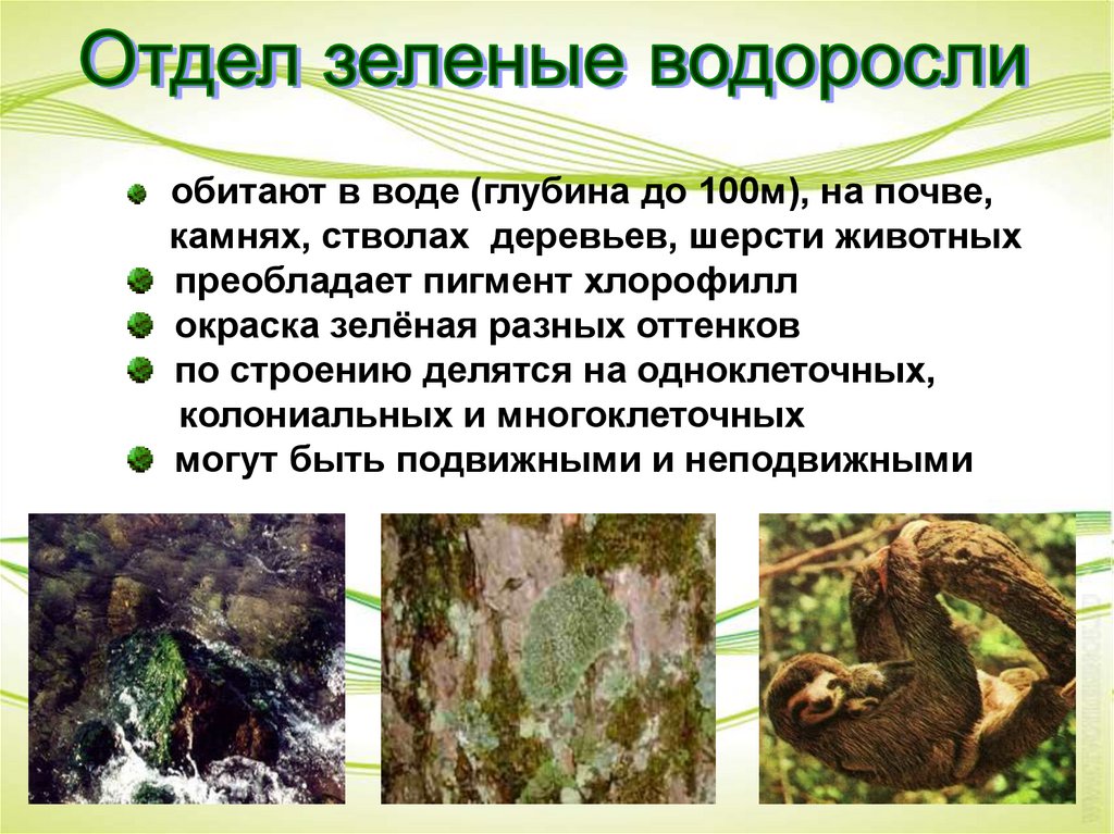 • Растут на глубине до 200м• Содержат пигменты: хлорофилл и