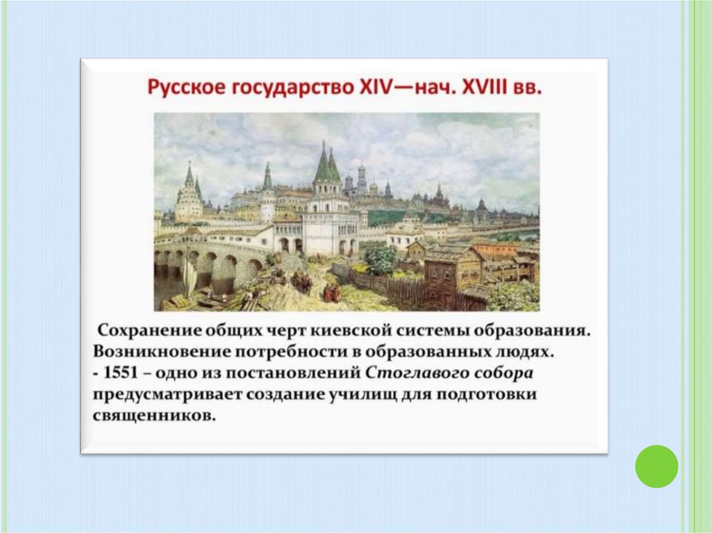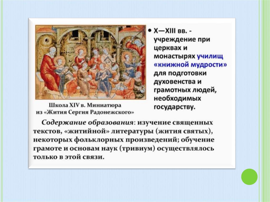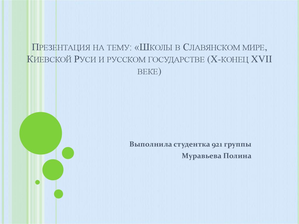ПРЕЗЕНТАЦИЯ НА ТЕМУ: «ШКОЛЫ В СЛАВЯНСКОМ МИРЕ,КИЕВСКОЙ РУСИ И РУССКОМ ГОСУДАРСТВЕ (X-КОНЕЦ XVII