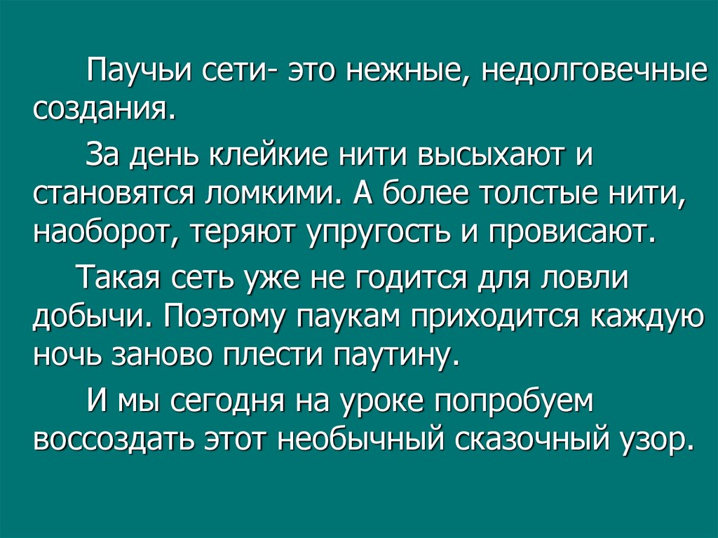 Паучьи сети- это нежные, недолговечныесоздания.