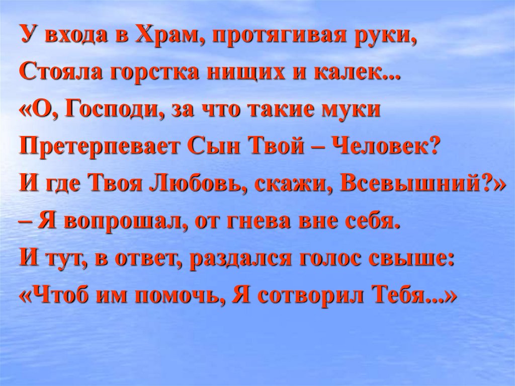 «Чтоб им помочь, Я сотворил Тебя...»