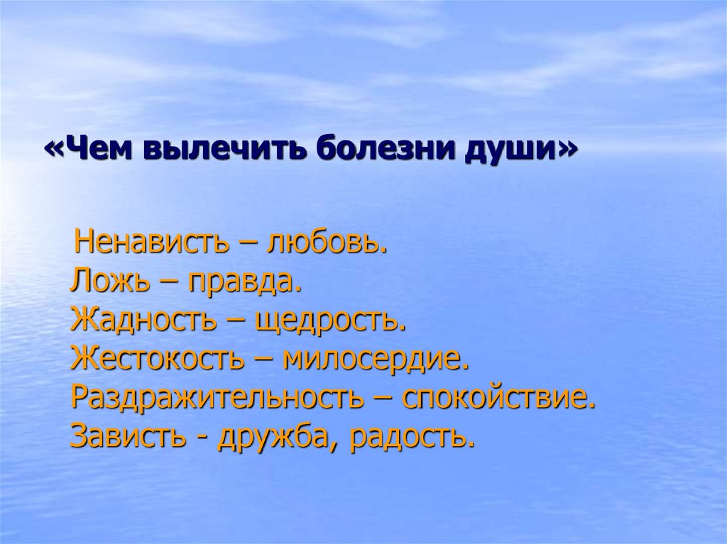 «Чем вылечить болезни души»Ненависть – любовь.