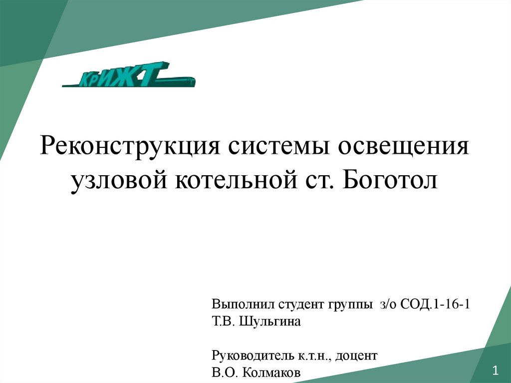 Реконструкция системы освещения узловой котельной ст. Боготол