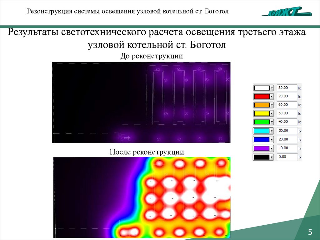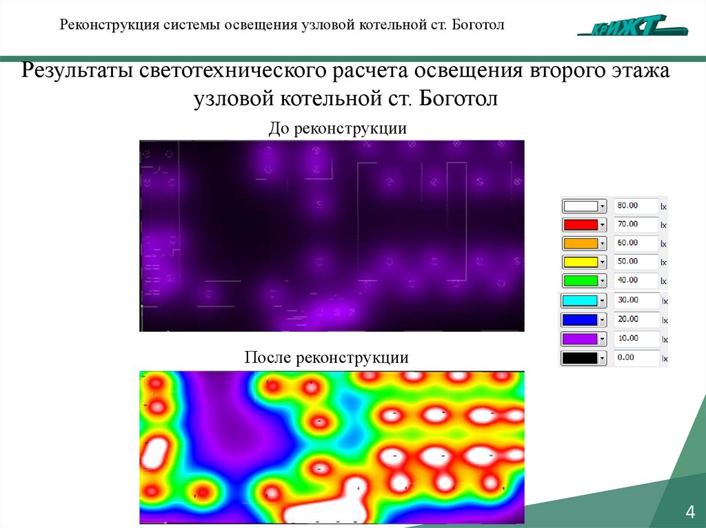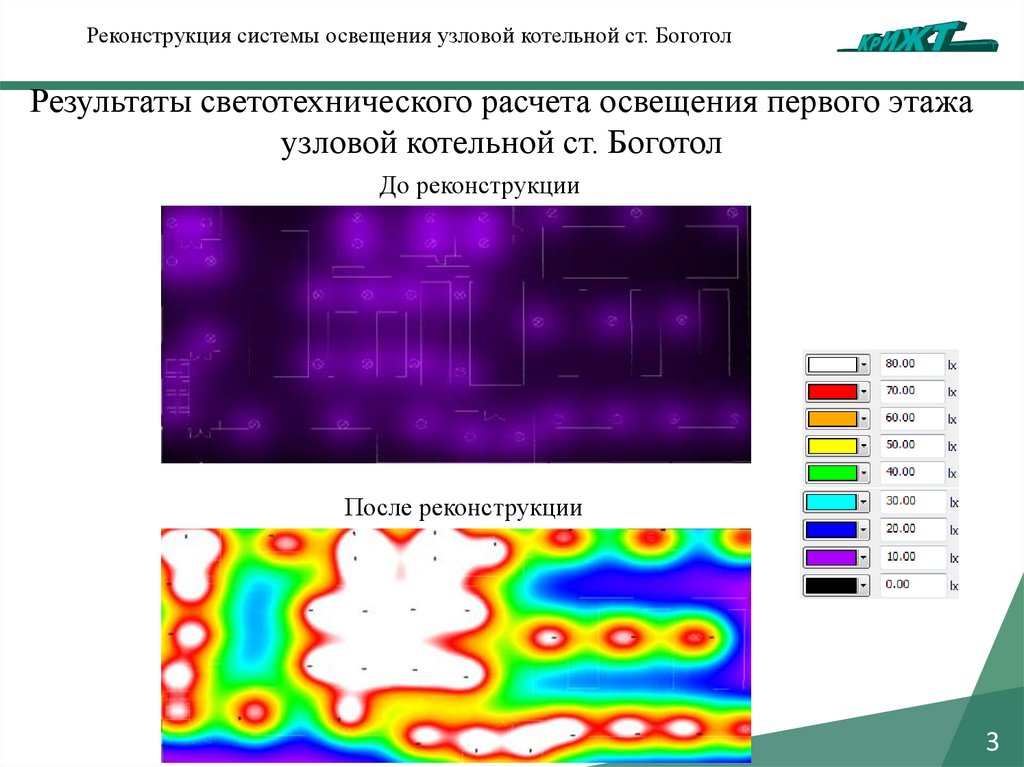 Реконструкция системы освещения узловой котельной ст. БоготолРезультаты светотехнического расчета освещения третьего этажа