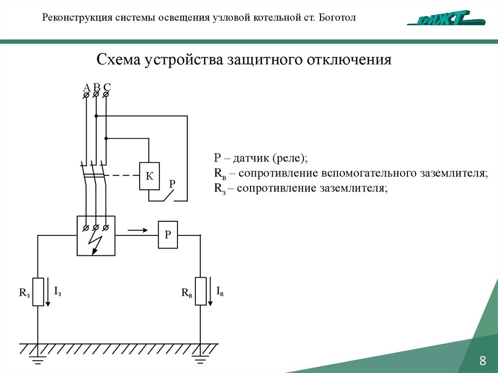Реконструкция системы освещения узловой котельной ст. БоготолСхема устройства защитного отключения