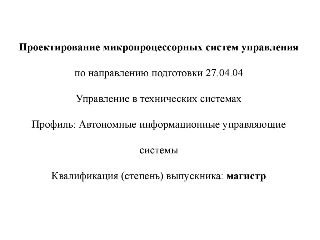Проектирование микропроцессорных систем управленияпо направлению подготовки 27.04.04
