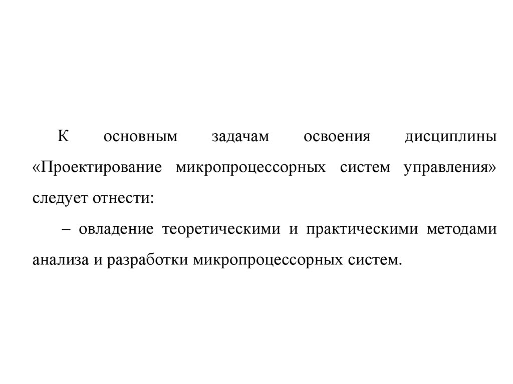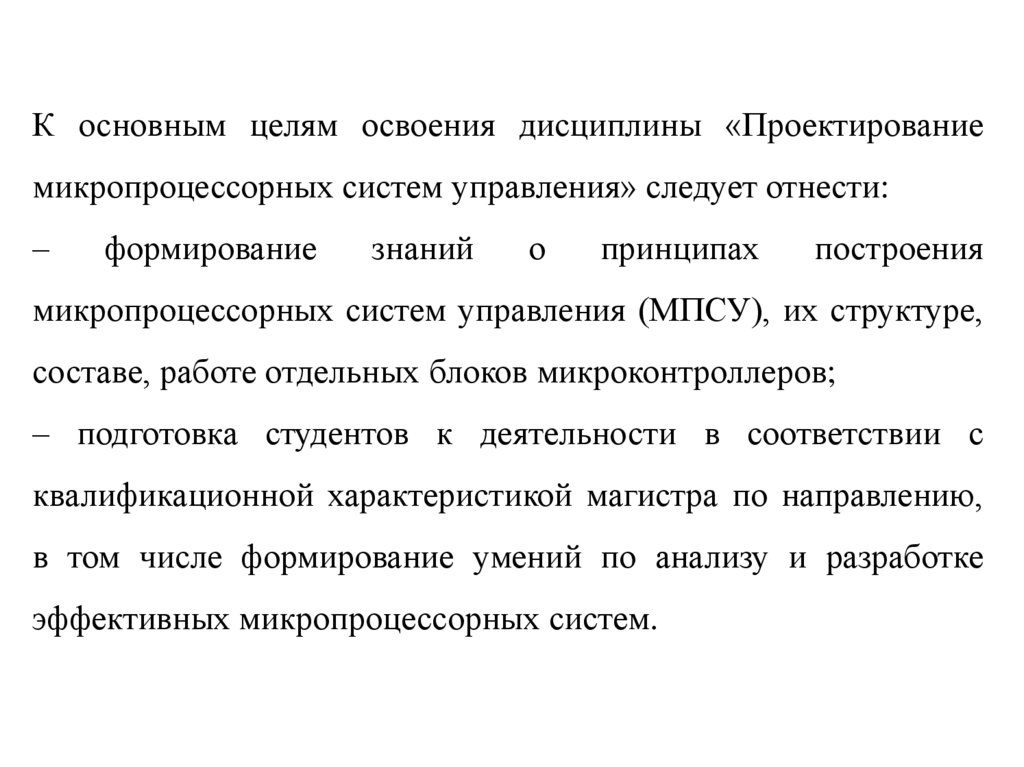 К основным целям освоения дисциплины «Проектированиемикропроцессорных систем управления» следует отнести:
