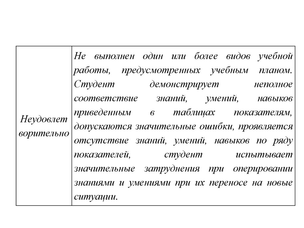 Не выполнен один или более видов учебнойработы, предусмотренных учебным планом.