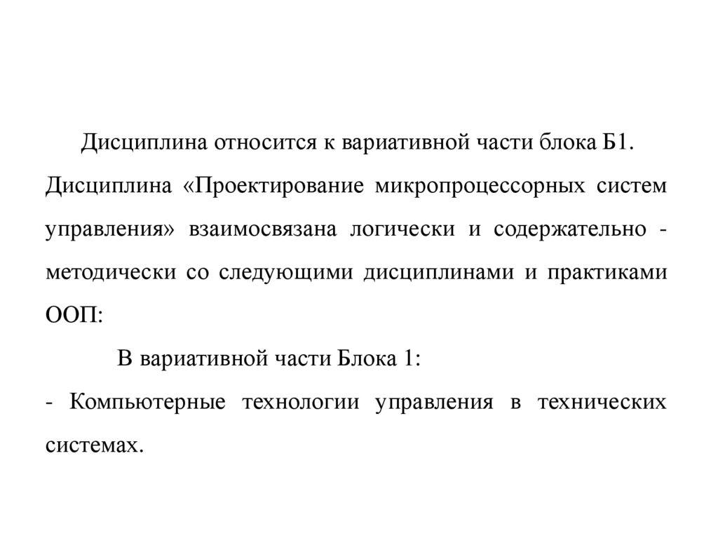 Дисциплина относится к вариативной части блока Б1.Дисциплина «Проектирование микропроцессорных систем