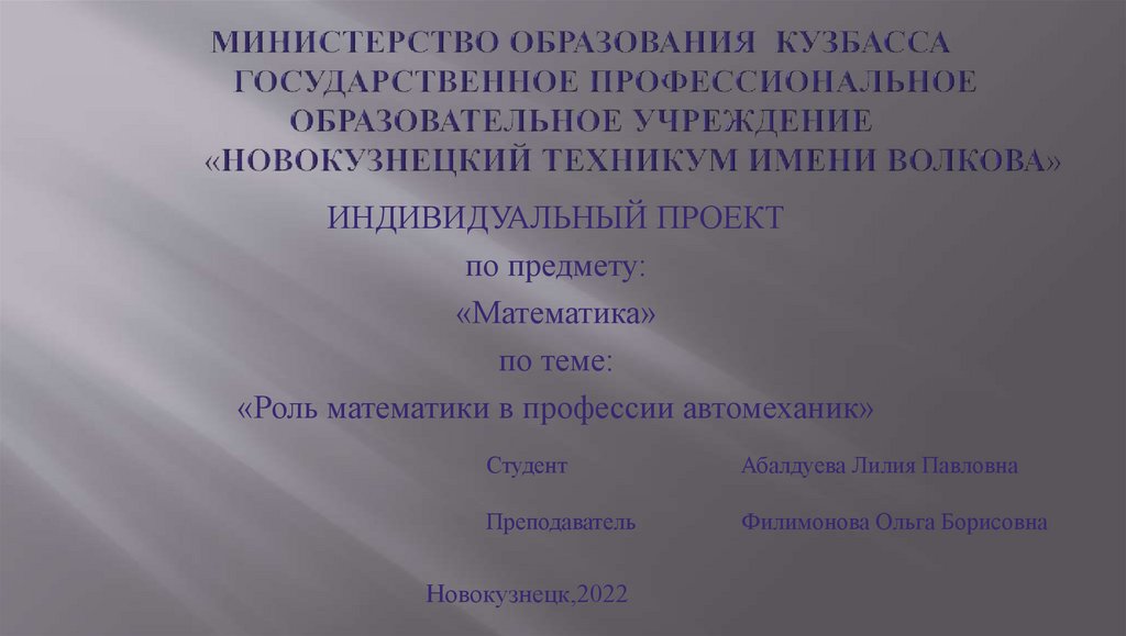 ИНДИВИДУАЛЬНЫЙ ПРОЕКТпо предмету: