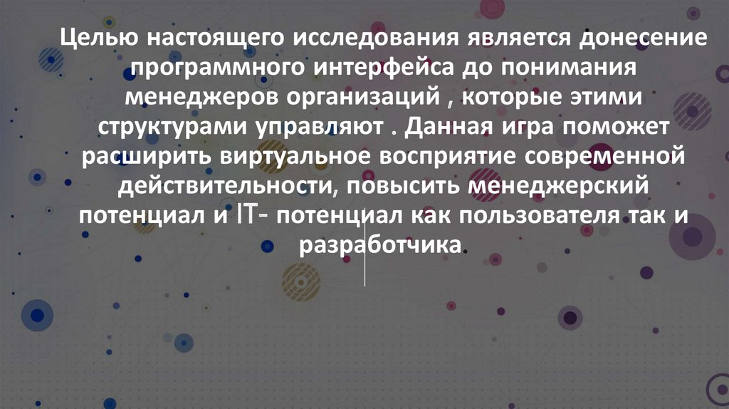 1. Целью настоящего исследования является донесение программного интерфейса до понимания менеджеров организаций , которые этими